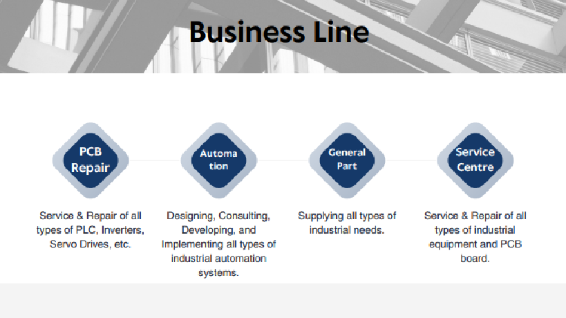 Kami adalah perusahaan yang bergerak di bidang Repair dan Service untuk Industrial Electronic control yang memberikan jasa perbaikan seperti :